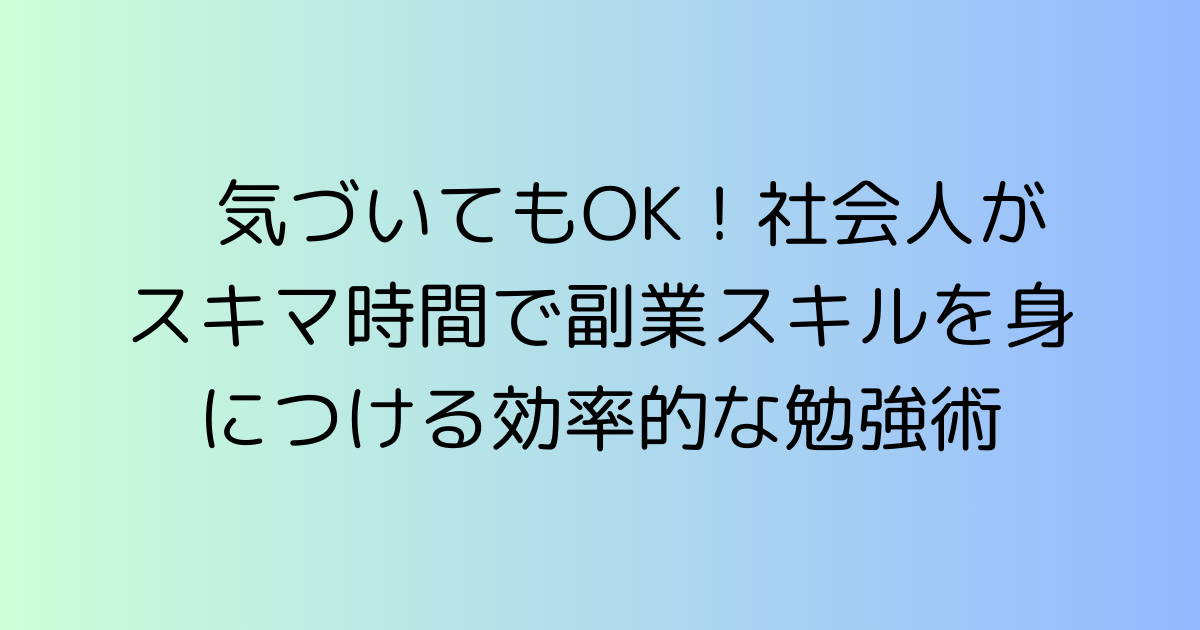 気づいてもOK!社会人がスキマ時間で副業スキルを身につける効率的な勉強術