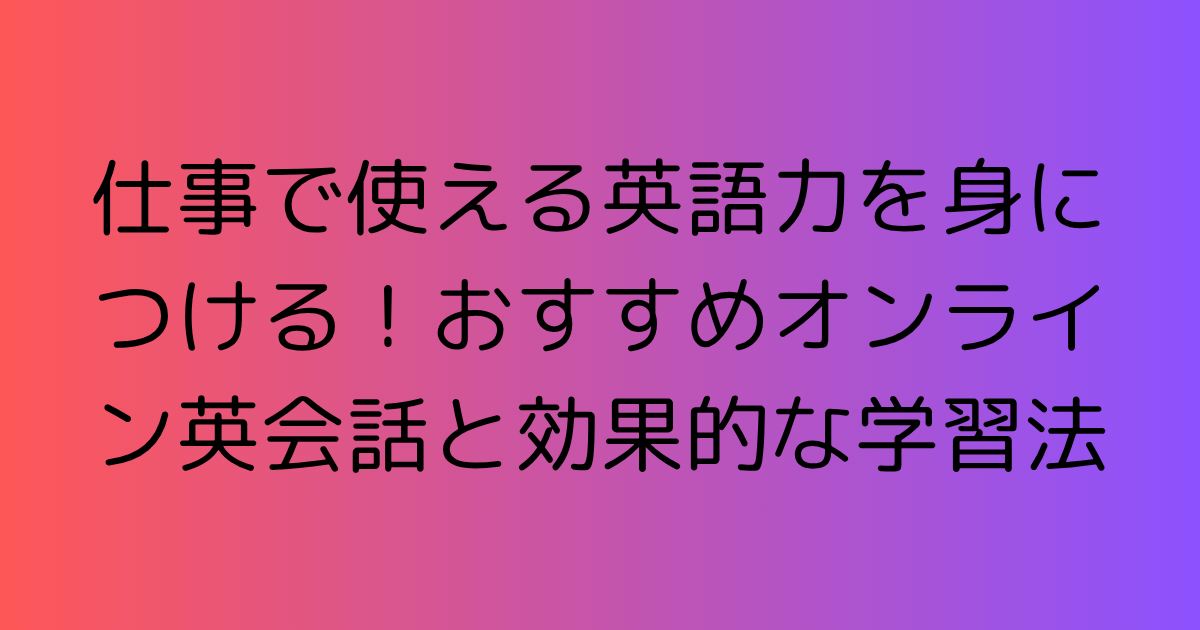 グローバル化が進む今、ビジネスシーンでの英語力は大きな武器になります。とはいえ、「何から始めていいかわからない」「忙しくて通学は難しい」という社会人も多いはず。そんな方におすすめなのが、オンライン英会話と自宅学習を組み合わせた効率的な英語学習法です。