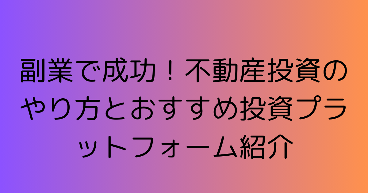 副業で成功!不動産投資のやり方とおすすめ投資プラットフォーム紹介