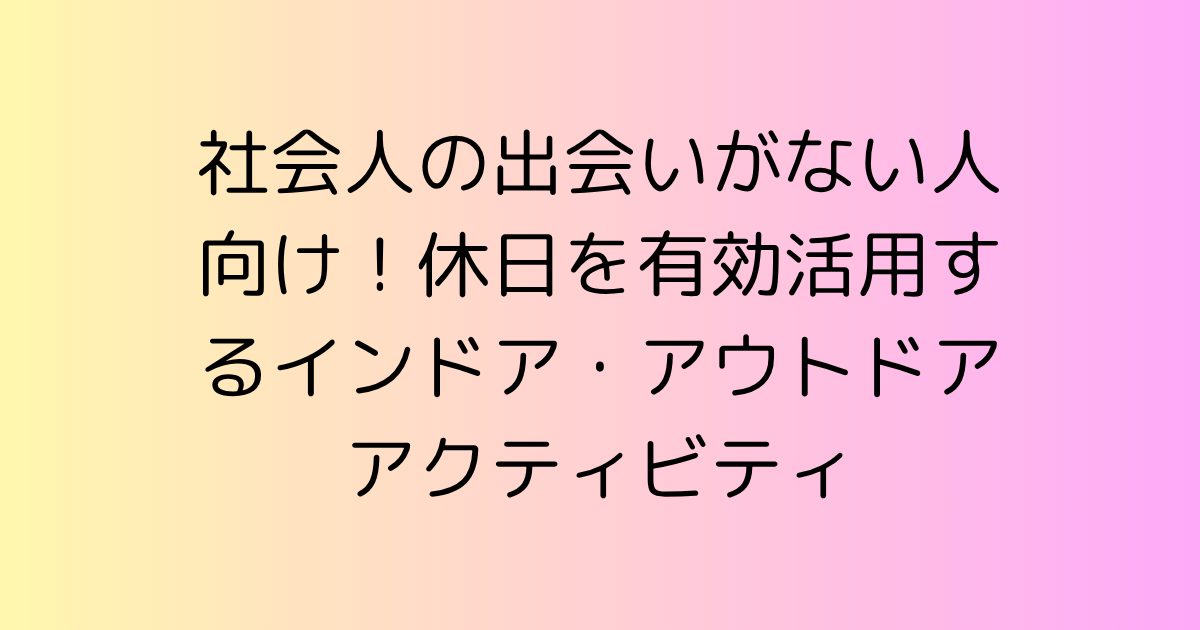 ✅ 社会人が休日に出会いをつかむための「アクティビティ戦略」 ✅ インドア派・アウトドア派それぞれに向けたおすすめ行動 ✅ 実際に恋愛や友情に発展しやすいシーン
