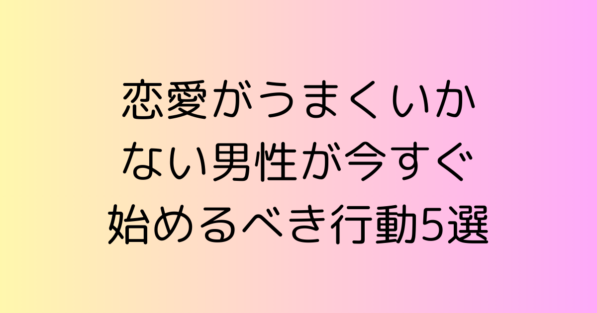 恋愛がうまくいかないと感じる男性が今すぐ始めるべき行動を5つご紹介しました。自己改善、コミュニケーションスキルの向上、過去の恋愛からの学び、感情のコントロール、そして出会いの場を広げることが、恋愛を成功に導く鍵となります。これらの行動を取り入れることで、恋愛に対する姿勢が前向きになり、新たなチャンスが訪れることでしょう。