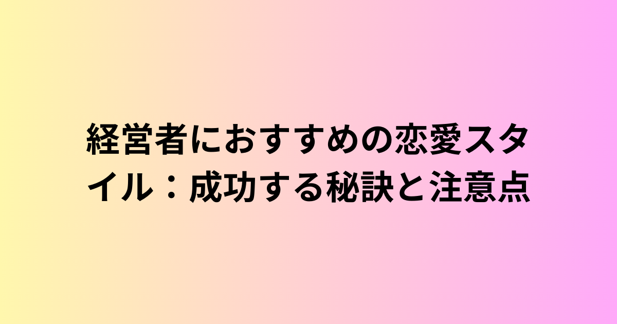 経営者におすすめの恋愛スタイル:成功する秘訣と注意点