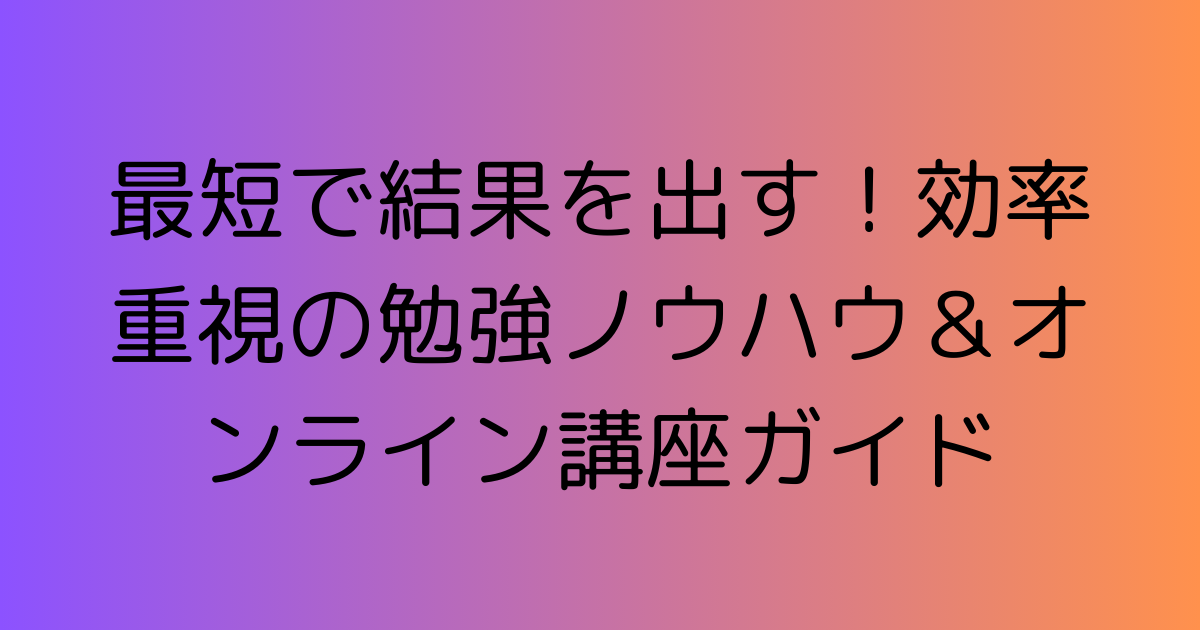最短で結果を出す!効率重視の勉強ノウハウ&オンライン講座ガイド